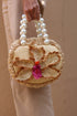 Handcrafted in Portugal by skilled artisans, this exquisite handbag blends natural raffia and delicate crochet to striking effect. A meticulously crafted orchid blooms at the center — an elegant nod to femininity — while lustrous pearl handles elevate the design with timeless charm.